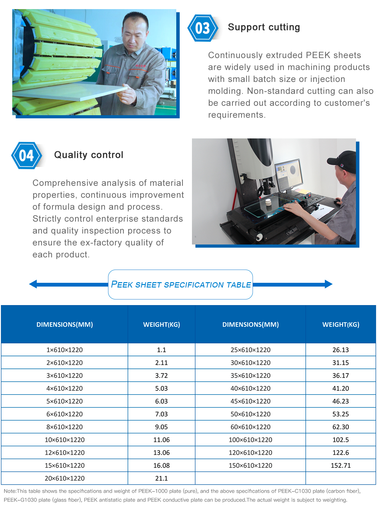 Nanjing Shousu has the independent extrusion production capacity of PEEK sheets. The thickness range of PEEK sheets produced by us is between 1-150mm, and customized processing can be made according to customer requirements. Nanjing Shousu has the production capacity of PEEK sheets of different specifications and sizes.