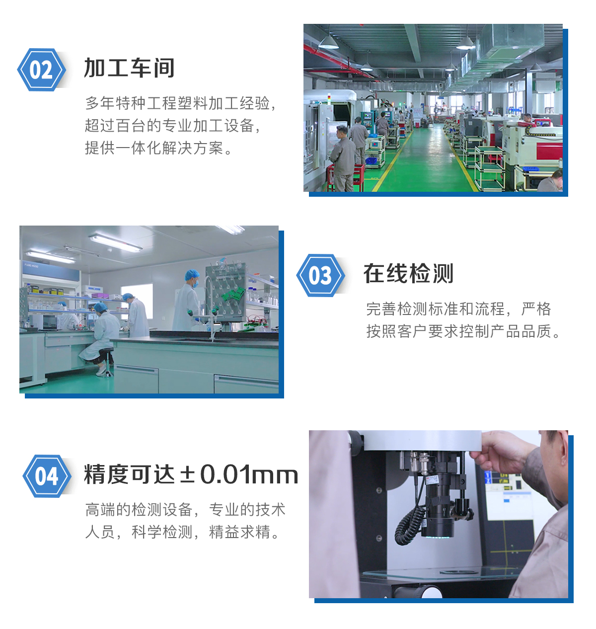 3.化学稳定性好:PEEK有良好的耐酸、碱、盐、水和气体的性能,在一般的条件下,它们不与这些物质发生化学反应。